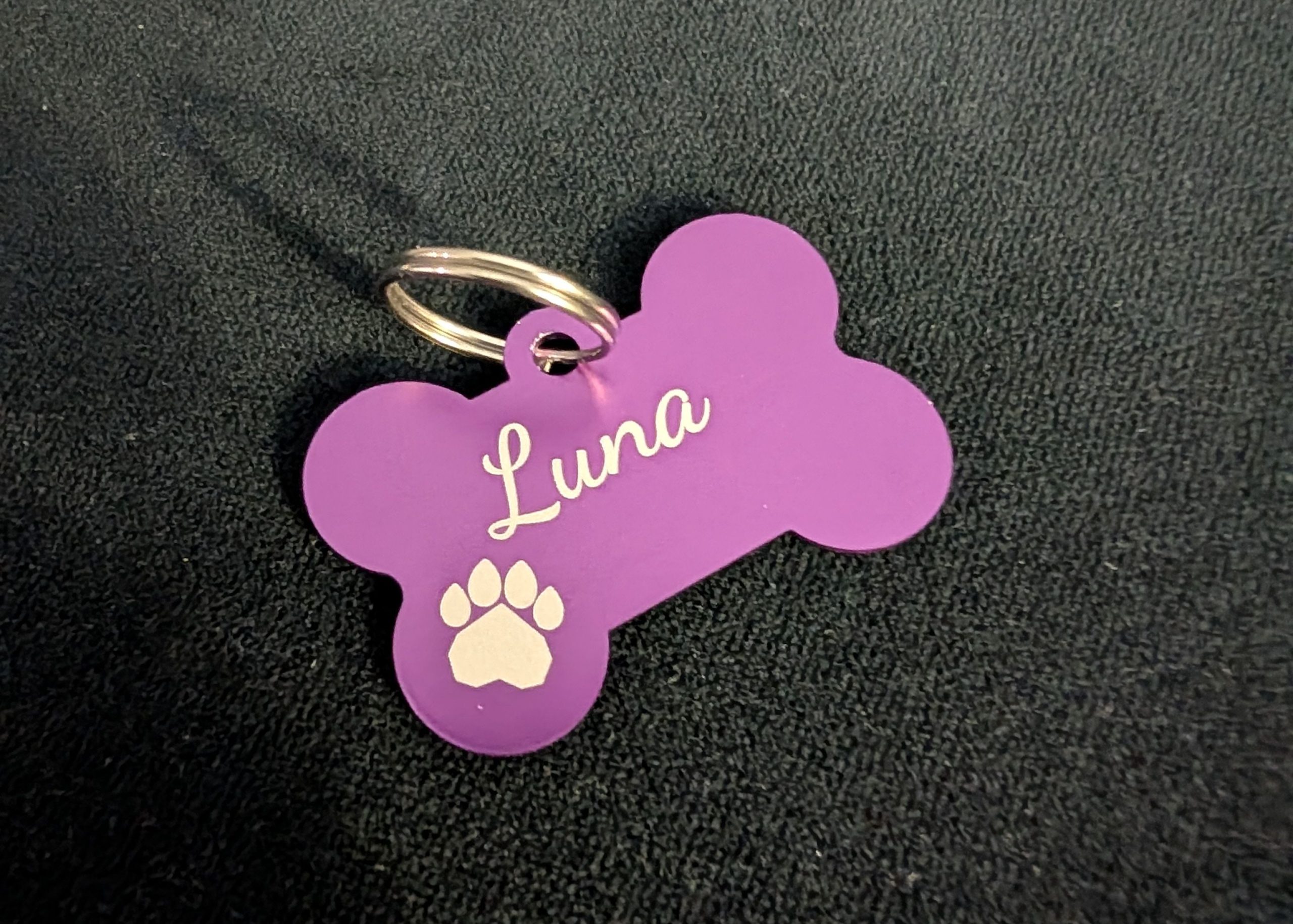 Laser engraving your pet tags allows you to add a personal touch to your pet tags that can include not only their name, but also your contact information should your furry loved one become separated from you. You choose the tag…you choose the font. No more boring stamped on information.